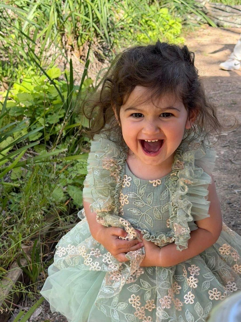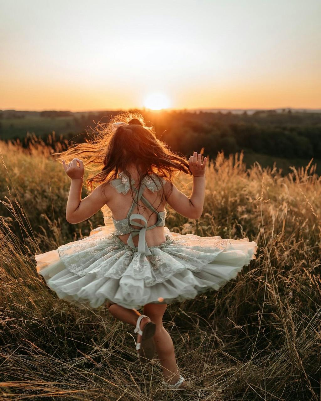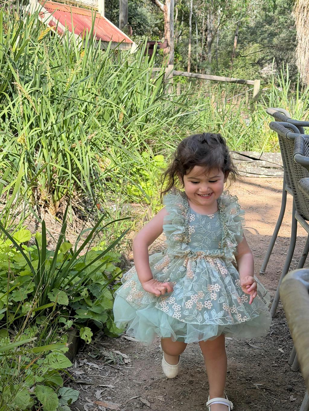 The tulle skirt, in layers of soothing sage, adds a whimsical touch that's perfect for a flutter among the flowers or a joyous celebration amidst the greenery. This dress's color and design are for the dreamers, the ones who find beauty in the whisper of leaves and the soft kiss of morning dew.